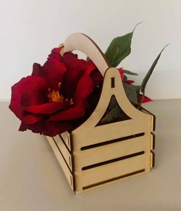 rustikalen, kleinen Holzkorb mit einem abgerundeten Griff.