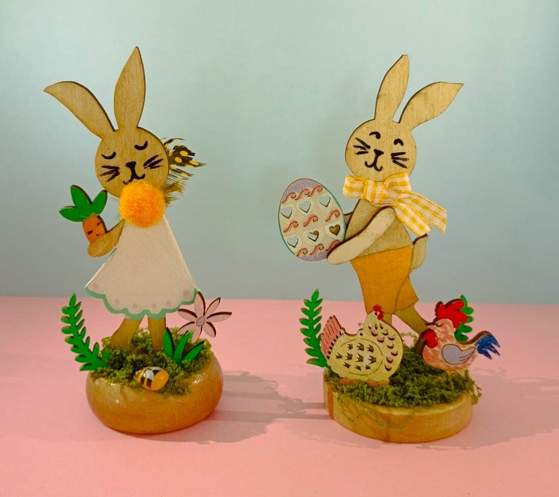 Niedliche Kaninchen sind ein Symbol für Frühling und Erneuerung. Geeignet als Heimdekoration, Kinderzimmer oder Osternkörbchen.