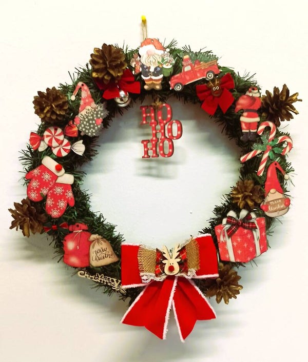 Weihnachtskränze mit Holzelementen eignen sich perfekt für Ihre Tür oder als Geschenk für Liebhaber exklusiver Handarbeit. Durchmesser 45 cm.