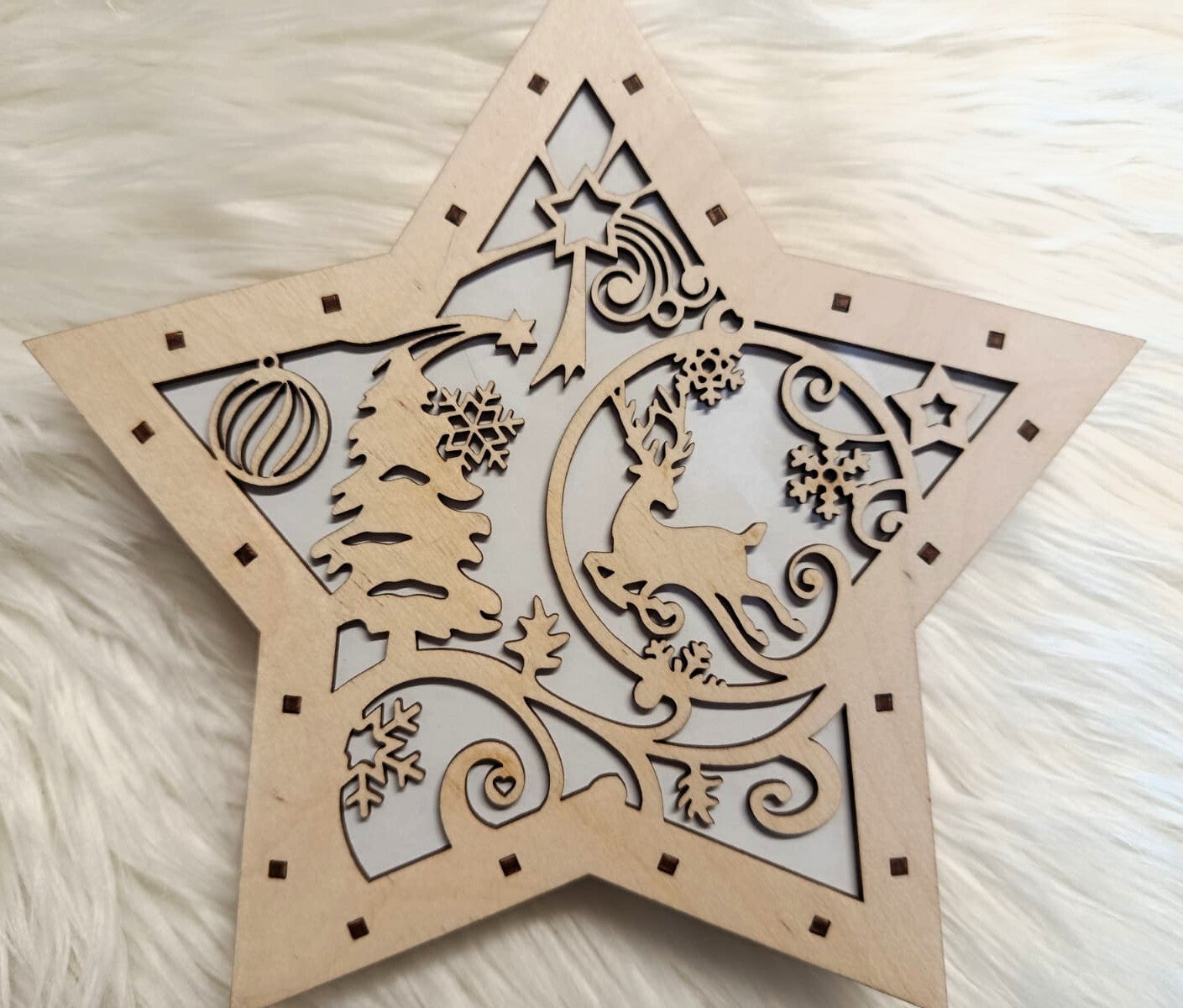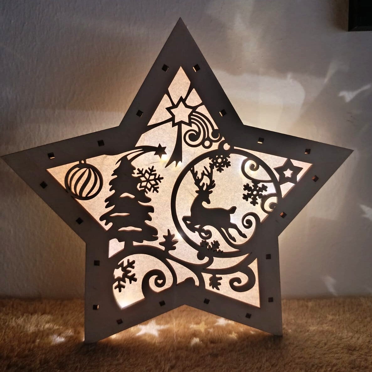 Weihnachtssternlaternen aus Holz mit Girlande im Inneren. Ein tolles originelles Geschenk oder eine tolle Dekoration für Ihr Zuhause. In jeder Farbe erhältlich.