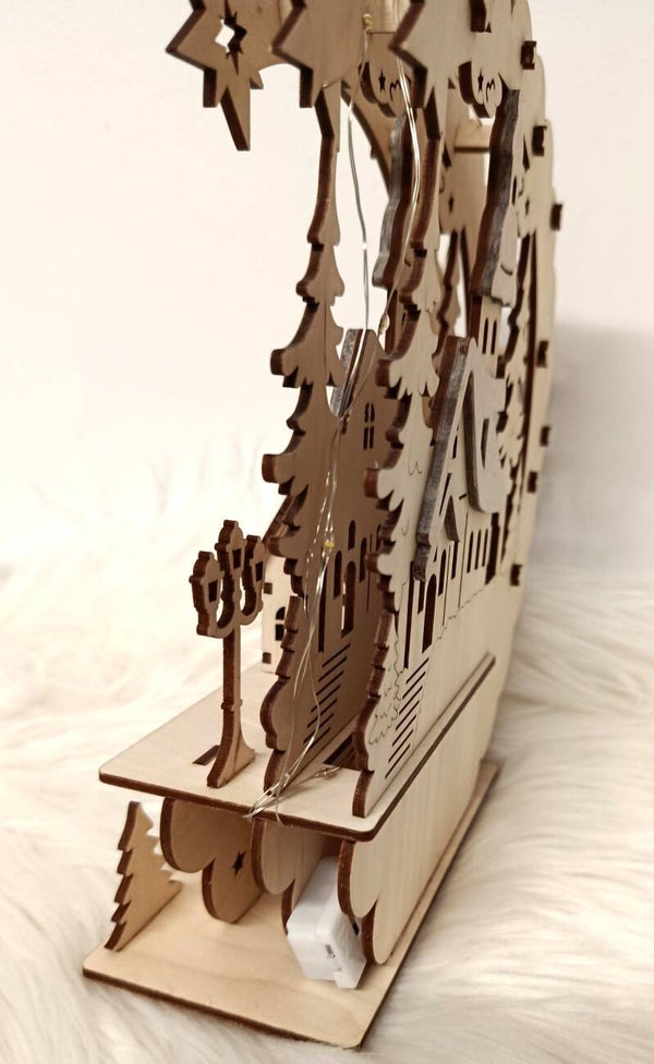 Weihnachtswald-Nachtlicht aus Holz. Höhe 25 cm.